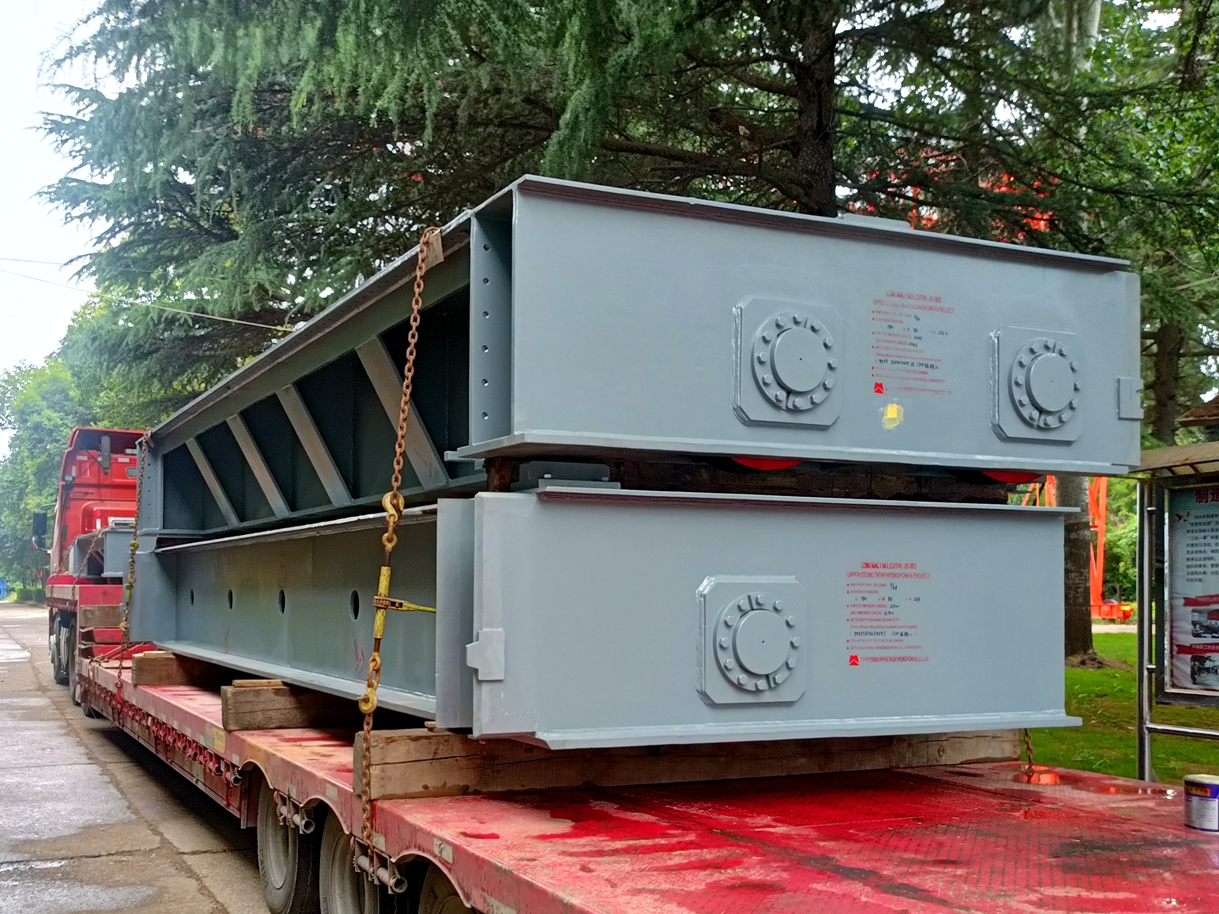 此次包裝發(fā)運閘門包含:Kep河進水口事故門一套、上達岱尾水檢修門兩套、Tatay河調(diào)水隧洞工作門一套、Tatay河底孔檢修門一套、Tatay河底孔工作門一套??傆嫲l(fā)運重量208.5噸,發(fā)運車次七輛。在裝車過程中,現(xiàn)場管理人員嚴(yán)格遵守安全操作規(guī)程,制定裝配車方案,加強現(xiàn)場監(jiān)管和安全檢查。起重作業(yè)人員佩戴齊全安全防護用品,熟練地指揮著吊車進行閘門的裝車工作。專業(yè)的安全員和技術(shù)人員進行現(xiàn)場指導(dǎo),確保裝車過程的安全與順利。經(jīng)過連續(xù)加班奮戰(zhàn),峽區(qū)項目部成功完成此次裝車發(fā)運任務(wù),確保貨物的及時送達。