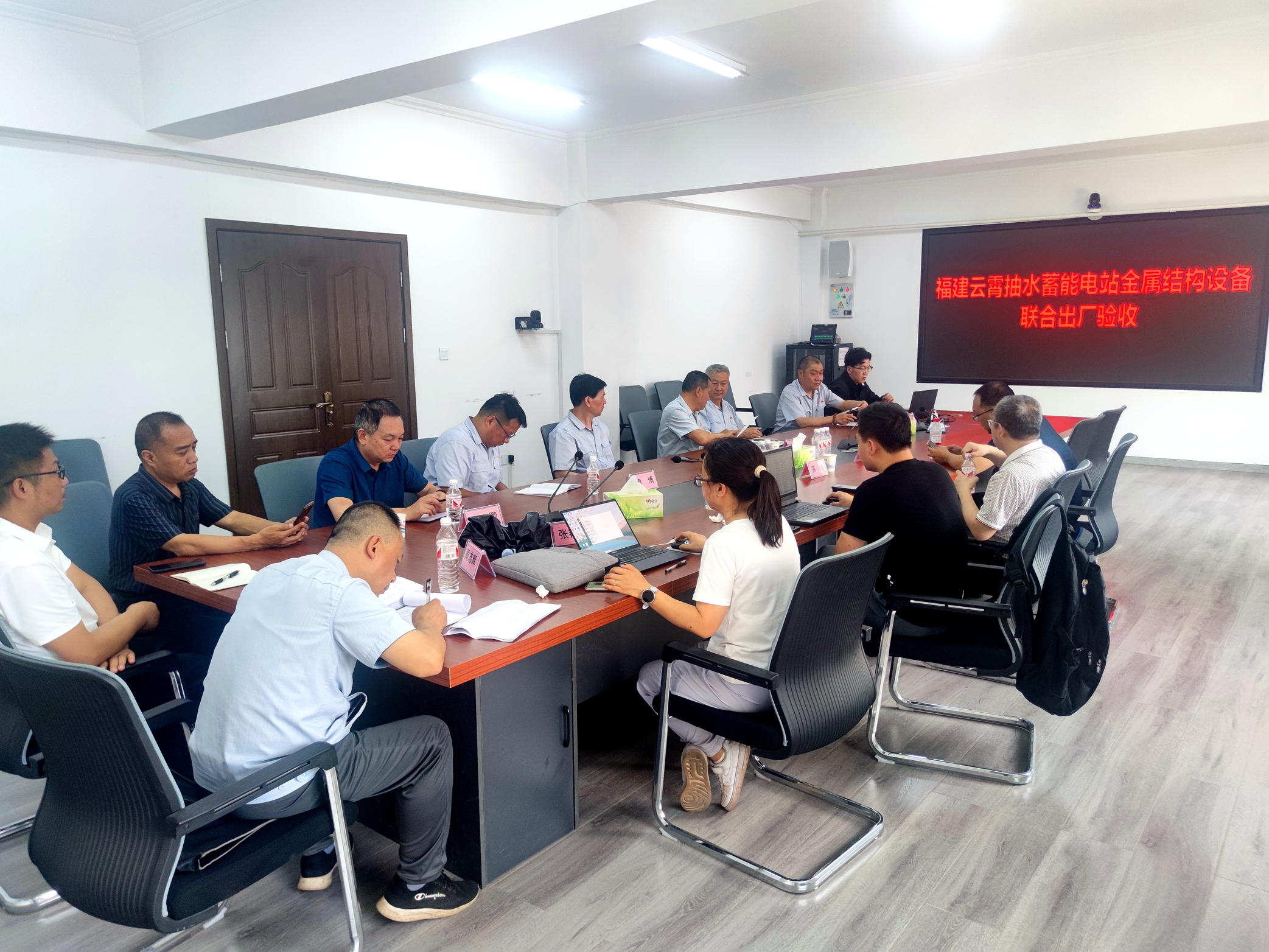 2025年6月9-11日,中核國電漳州能源有限公司在三門峽新華水工機械有限責任公司組織召開《福建云霄抽水蓄能電站金屬結(jié)構(gòu)設(shè)備采購合同》啟閉機設(shè)備聯(lián)合出廠驗收會。本次驗收設(shè)備共八臺套,主要包含:上水庫進/出水口事故閘門2X 2500kN固定卷揚式啟閉機及附件(2套)、下水庫進/出水口檢修閘門2X2500kN固定卷揚式啟閉機及附件(2套)、下水庫溢洪道工作閘門2X400kN固定卷揚式啟閉機及附件(2套)、下水庫溢洪道檢修閘門2X400kN臺車式啟閉機及附件(1套)、下水庫放水底孔進口事故閘門630kN固定卷揚式啟閉機及附件(1套)。參加聯(lián)合驗收的單位有中核工程咨詢有限公司、西安熱工研究院有限公司、廣東省水利電力勘測設(shè)計研究院有限公司、中國電建集團北京勘測設(shè)計研究院有限公司及我公司的相關(guān)人員。